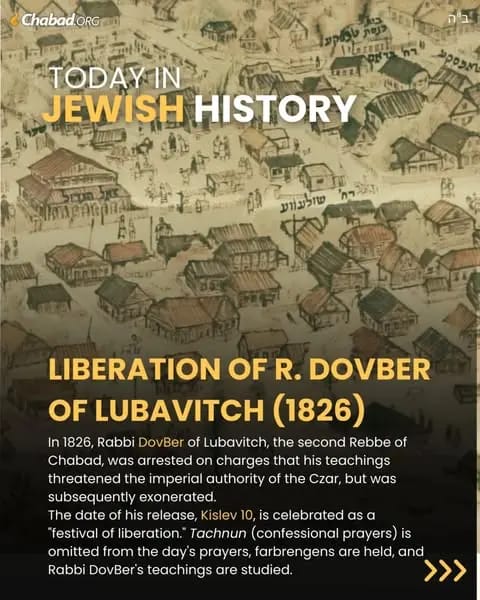 The second Chabad Rebbe was arrested for his teachings but later exonerated. His release is celebrated as a "festival of liberation."