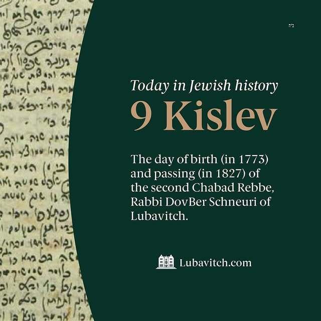 The second Chabad Rebbe, known as the Mitteler Rebbe, was born and passed on this day.